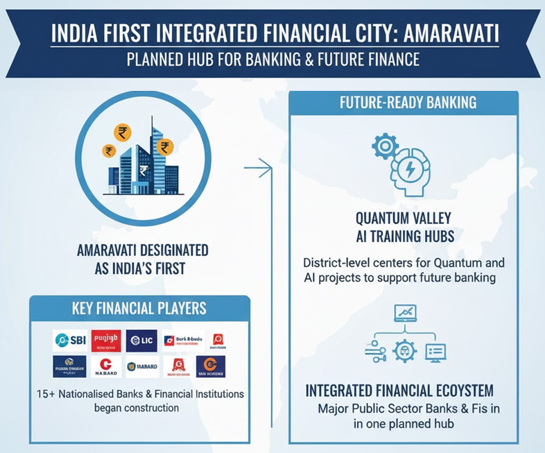 • Amaravati has been designated as India’s first Integrated Financial City.
