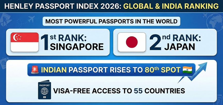 - India is ranked 80th in the Henley Passport Index 2026.