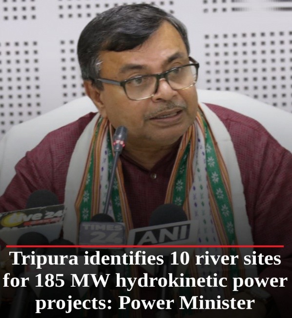 - The Tripura government identified 10 river sites to generate about 185 megawatts of power using hydrokinetic turbine technology.