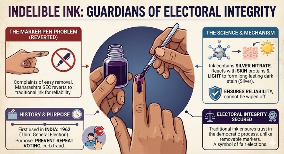 Maharashtra’s State Election Commission has decided to revert to traditional indelible ink for zilla parishad and panchayat samiti elections after complaints that marker-pen ink could be wiped off.