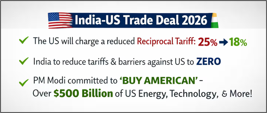 - India and the U.S. finalised a major trade understanding in 2026 to reduce tariffs and expand bilateral trade.