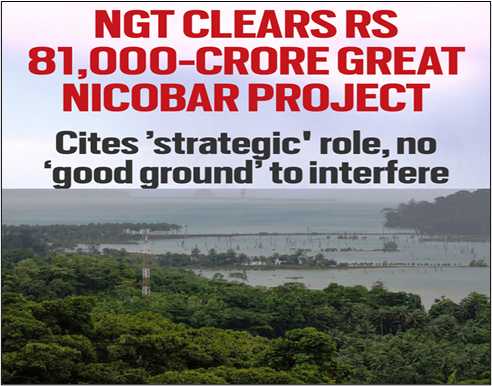 • The National Green Tribunal (NGT) has cleared the Great Nicobar Island infrastructure project while ensuring the strict compliance with environmental safeguards.