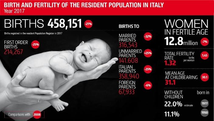 - Italy is expected to have its lowest number of births this year, according to Italy’s national statistics agency, ISTAT.