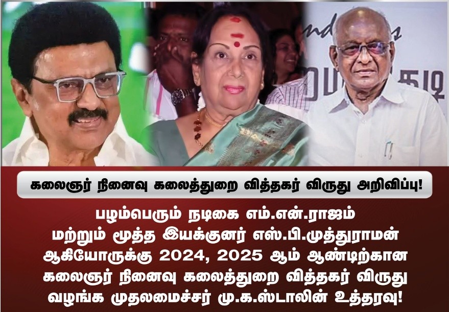 - The awards will be conferred on veteran actor M.N. Rajam (2024) and veteran filmmaker S.P. Muthuraman (2025).
