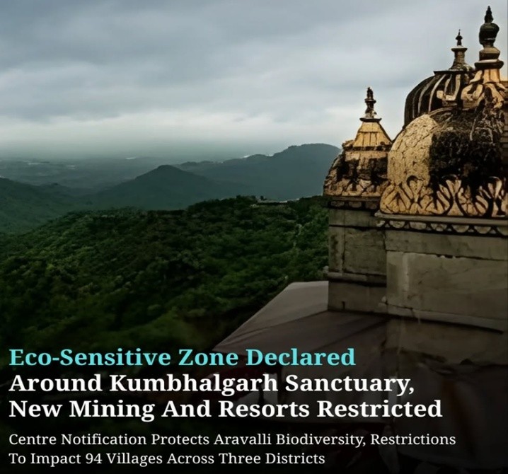 - The Ministry of Environment, Forest and Climate Change declared Kumbhalgarh Wildlife Sanctuary in Rajasthan as an Eco-Sensitive Zone (ESZ).