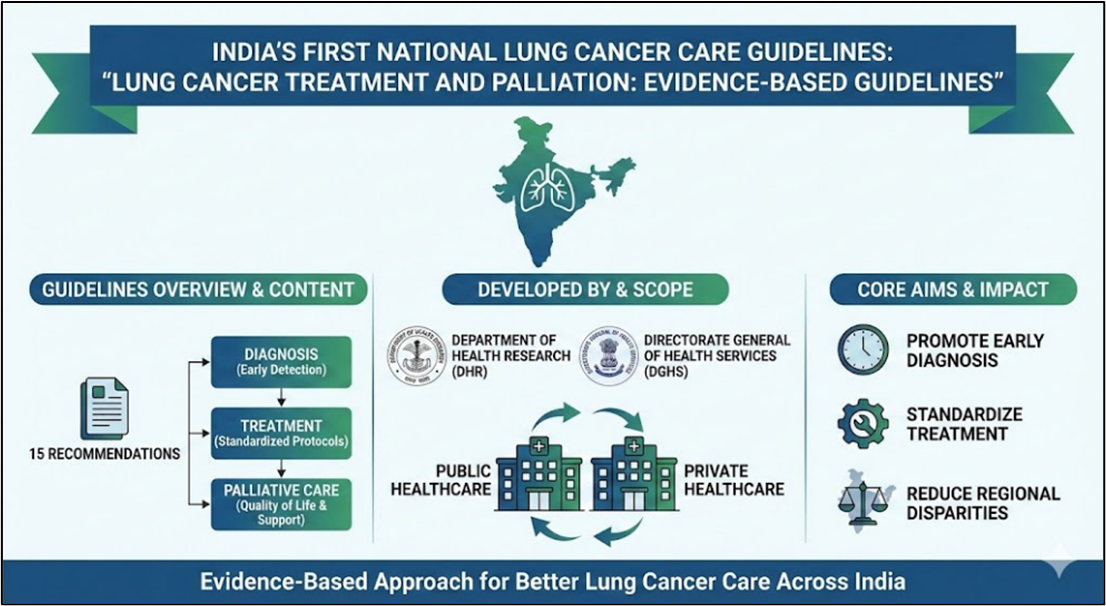 - India released its first national evidence-based lung cancer care guidelines titled “Lung Cancer Treatment and Palliation: Evidence-Based Guidelines”.