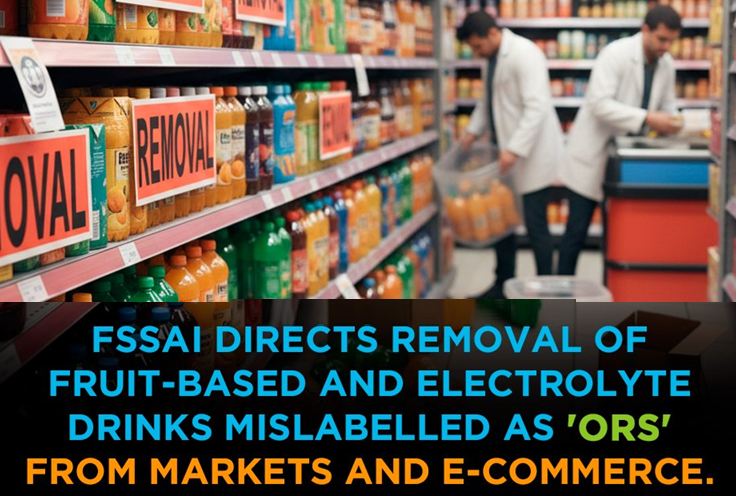 - The Food Safety and Standards Authority of India (FSSAI) ordered the removal of beverages falsely labelled as Oral Rehydration Solutions (ORS).