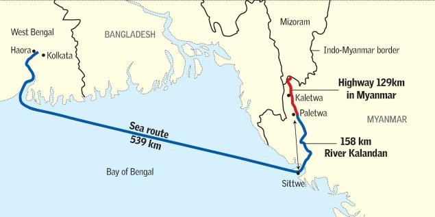 - It will then link Sittwe seaport to Lashio in Myanmar via Kaladan river boat route and then from Lashio to Mizoram in India by road transport.