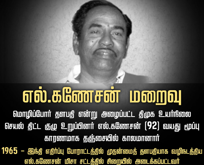 Senior Dravidian leader and DMK high-level action committee member L Ganesan passed away recently.