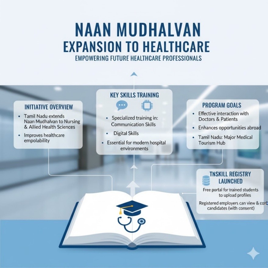 Tamil Nadu has extended the Naan Mudhalvan programme to Nursing and Allied Health Sciences to improve healthcare employability.