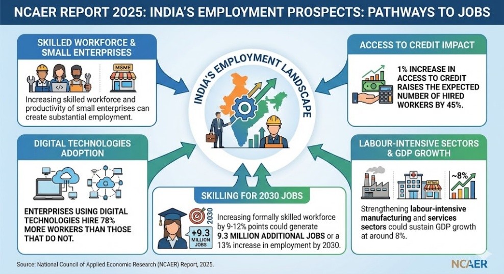 - A report titled “India’s Employment Prospects: Pathways to Jobs” was released by the National Council of Applied Economic Research (NCAER).