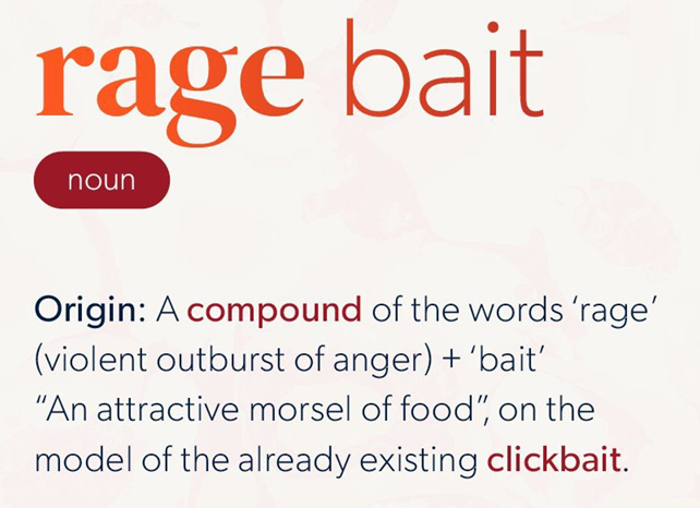 - “Rage bait” emphasizes how online content and algorithms influence emotions and behaviour.