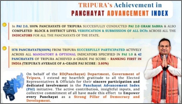 - Tripura secured the first position in the Panchayat Advancement Index (PAI) 2.0.