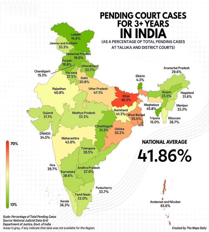 - According to the National Judicial Data Grid (NJDG), district courts have 4.69 crore pending cases.