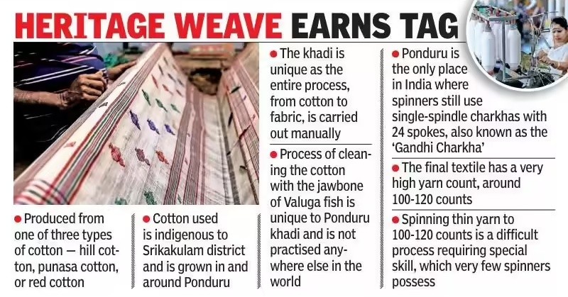 - Ponduru Khadi originates from Ponduru village in the Srikakulam district of Andhra Pradesh.