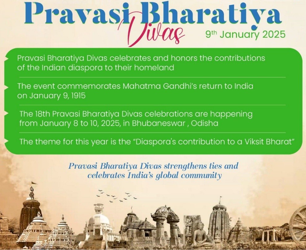 - The Pravasi Bharatiya Samman Award (PBSA) is given on this day to recognise outstanding overseas Indians.
