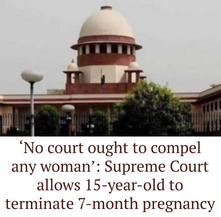 - The Supreme Court of India allowed a 15-year-old minor to terminate her 31-week pregnancy.