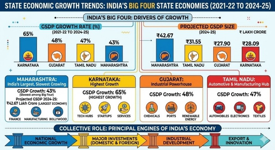- These four states together play a major role in India’s economic growth, investments, and industrial development.