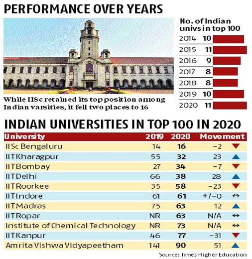 - The Indian Institute of Science was ranked 16th among the top 100 Universities of emerging Economies.