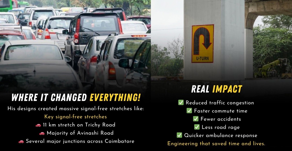 - His traffic innovations across Tamil Nadu created multiple signal-free corridors.