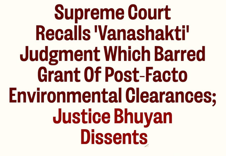 A Supreme Court Bench has reversed its May 2025 Vanashakti order that had stopped post-facto environmental clearances (EC).