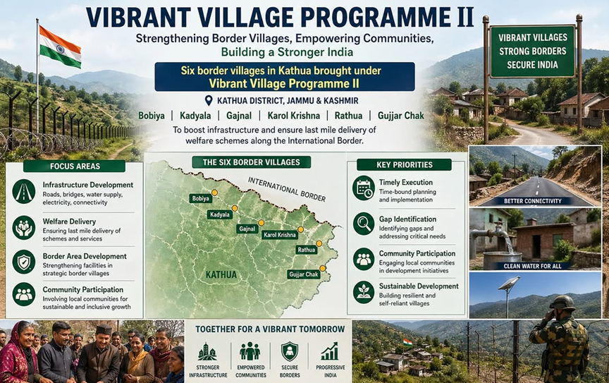 - Six border villages in Kathua, Jammu and Kashmir have been included under the Vibrant Village Programme Phase II.