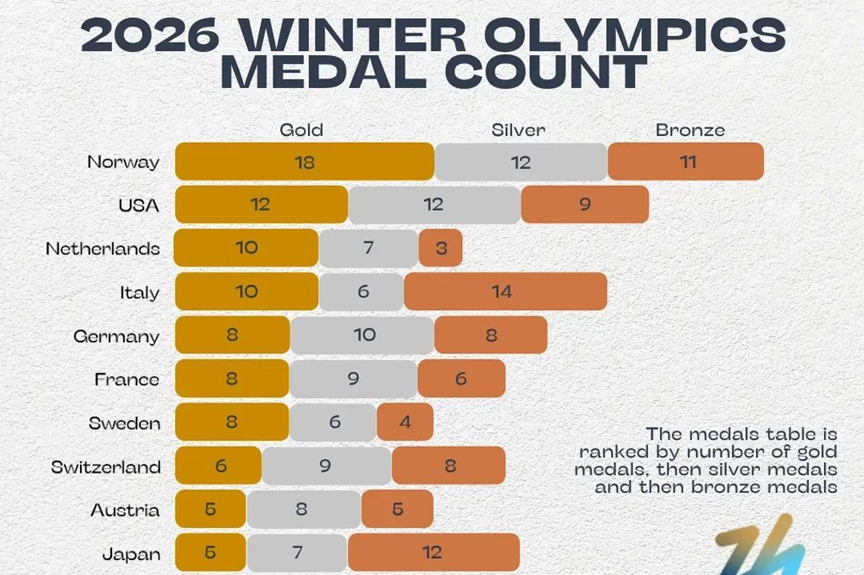 - Norway topped the medal table with 18 gold medals and 41 total medals.