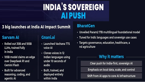 இந்திய AI தாக்க உச்சி மாநாடு 2026 இல் செயற்கை நுண்ணறிவு (AI) மாதிரிகள் விளக்கப் பட்டன.