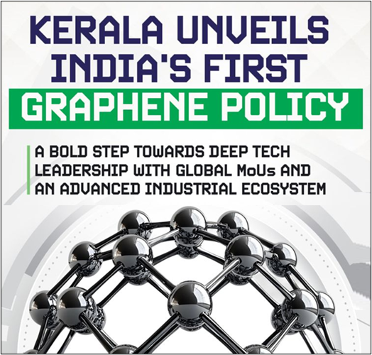 கிராபீனின் ஆராய்ச்சி, மேம்பாடு மற்றும் உற்பத்தியை ஊக்குவிப்பதற்காக இந்தியாவின் முதல் விரிவான கிராபீன் கொள்கையை கேரளா அங்கீகரித்துள்ளது.