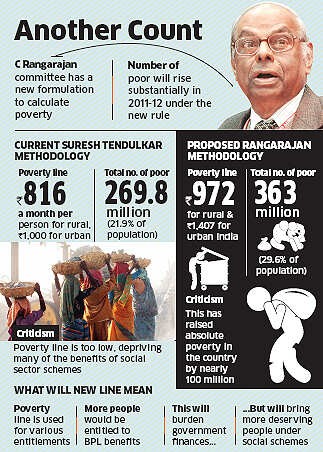 2014 ஆம் ஆண்டில், இரங்கராஜன் குழுவானது வறுமைக் கோட்டினை (வரம்பினை) கிராமப்புறங்களுக்கு மாதத்திற்கு 972 ரூபாயாகவும், நகர்ப்புறங்களுக்கு மாதத்திற்கு 1,407 ரூபாயாகவும் நிர்ணயித்தது.