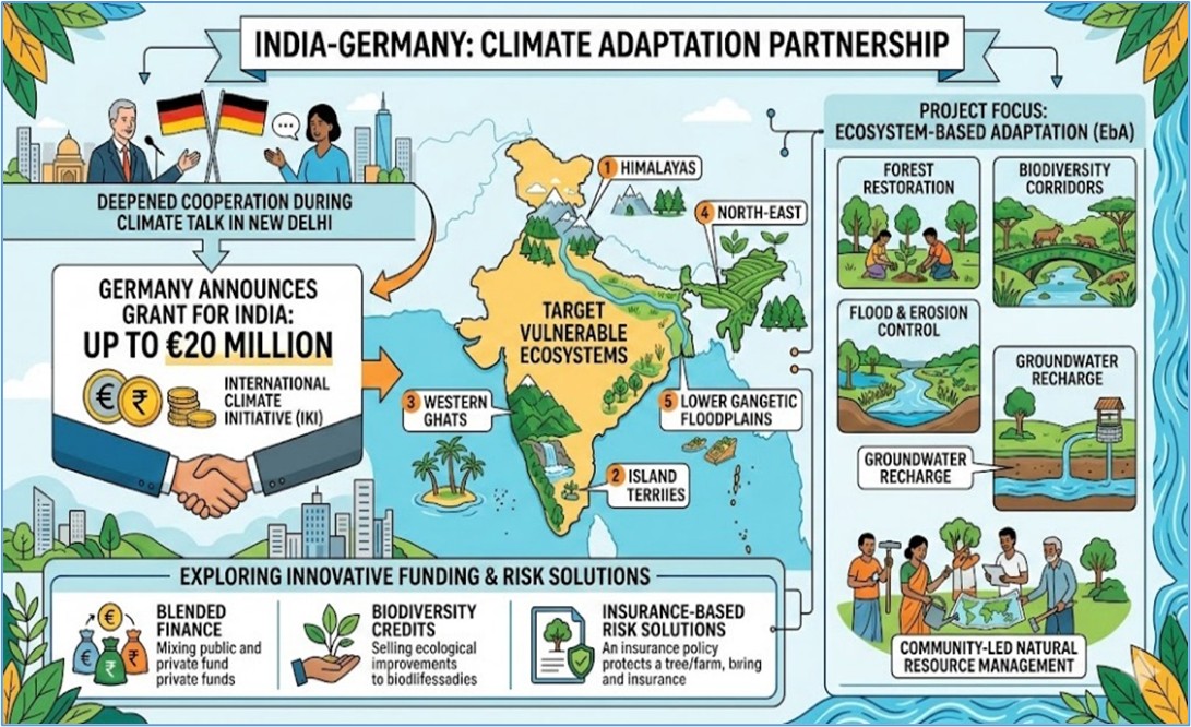 சர்வதேச காலநிலை முன்முயற்சியின் (IKI) கீழ் இந்தியாவிற்கு சுமார் 20 மில்லியன் யூரோக்கள் வரை மானியம் வழங்குவதாக ஜெர்மனி அறிவித்துள்ளது.