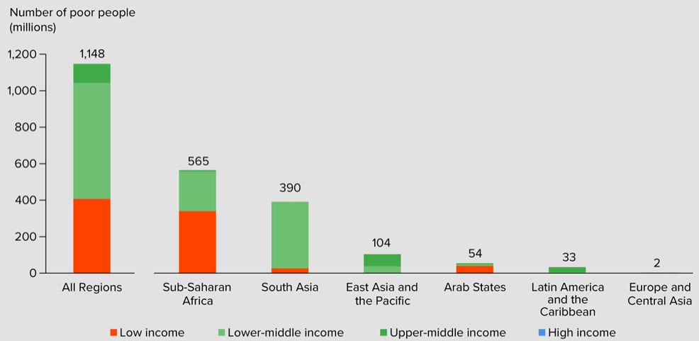 • ஏழ்மை நிலையில் உள்ளவர்களில் சுமார் 43.6 சதவீதம் பேர், அதாவது சுமார் 501 மில்லியன் மக்கள், குறைந்தது பாதியளவிலான MPI குறிகாட்டிகளில் பற்றாக் குறையுடன் கடுமையான வறுமை நிலையை எதிர் கொள்கின்றனர்.
