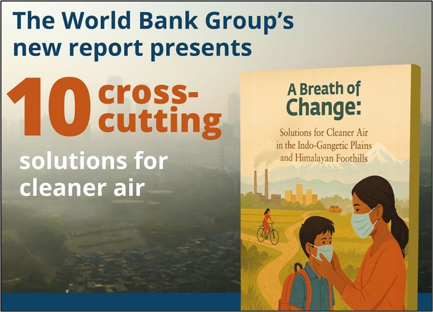 உலக வங்கி, சிந்து-கங்கை சமவெளி மற்றும் இமயமலை அடிவாரப் பகுதிகளில் காற்று மாசுபாடு குறித்த “A Breath of Change” என்ற 2025 அறிக்கையை வெளியிட்டது.
