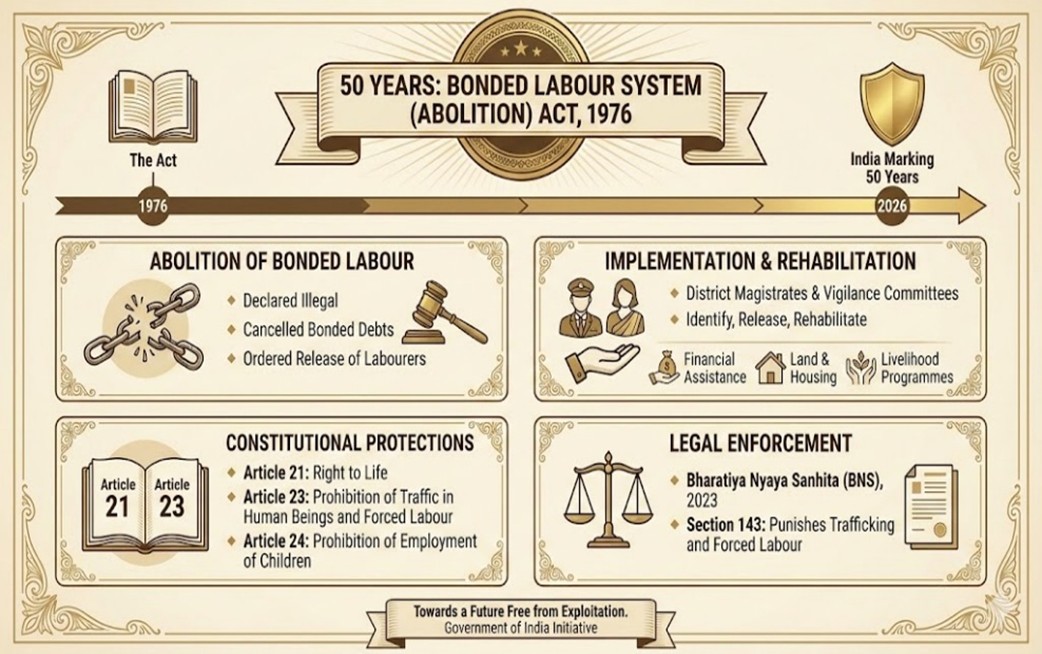 கொத்தடிமை தொழிலாளர் முறையை ஒழித்த 1976 ஆம் ஆண்டு கொத்தடிமை தொழிலாளர் முறை (ஒழிப்பு) சட்டத்தின் (BLSA) 50வது ஆண்டை இந்தியா கொண்டாடுகிறது.