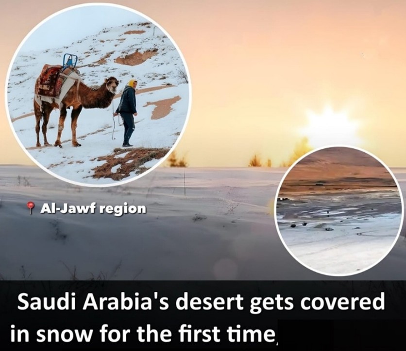 2025 ஆம் ஆண்டின் பிற்பகுதியில், சவூதி அரேபியாவின் அல்-ஜாவ்ஃப் பிராந்தியத்தின் உட்புறப் பாலைவனப் பகுதிகளில், வரலாற்றில் முதல் முறையாகப் பனிப்பொழிவு ஏற்பட்டது.