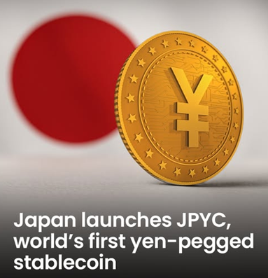 - ஜப்பானின் புத்தொழில் நிறுவனமான JPYC, யென் உடன் முழுமையாக இணைக்கப் பட்ட உலகின் முதல் ஸ்டேபிள்காயினை வெளியிட உள்ளது.