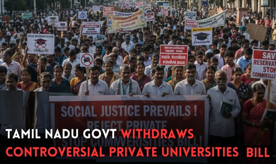 • தமிழ்நாடு அரசானது தமிழ்நாடு தனியார் பல்கலைக்கழகங்கள் (திருத்த) மசோதா, 2025ஐ திரும்பப் பெற்றது.