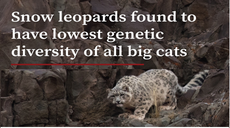 ஸ்டான்போர்டு பல்கலைக்கழகத்தின் புதிய ஆய்வில், பனிச்சிறுத்தைகள் எந்தப் பெரும் பூனை இனங்களிலும் இல்லாத, சிவிங்கிப் புலிகளை விடவும் மிகக் குறைந்த மரபணு பன்முகத்தன்மையைக் கொண்டுள்ளன.