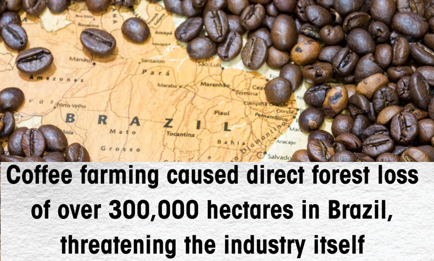 • 2001 மற்றும் 2023 ஆகிய ஆண்டுகளுக்கு இடையில் பிரேசிலின் அட்லாண்டிக் காடுகளில் 312,803 ஹெக்டேர் பரப்பிலான காடுகளின் இழப்புக்கு காபி சாகுபடி நேரடி காரணமாக அமைந்தது.