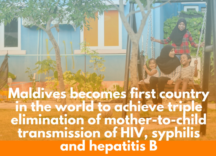 மாலத்தீவுகள் உலகின் முதல் அங்கீகரிக்கப்பட்ட மூன்று நோய்களின் ஒழிப்பை நிறைவு செய்து 2019 ஆம் ஆண்டில் HIV மற்றும் சிபிலிஸின் EMTCT தொற்று நீக்கத்திற்கான WHO அங்கீகாரத்தினை ஏற்கனவே பெற்றிருந்தன.
