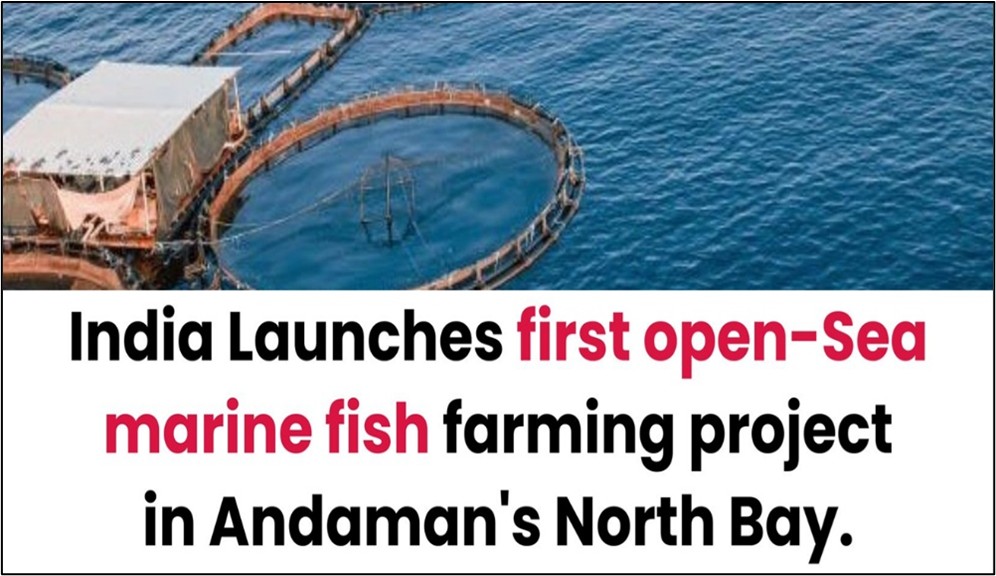 • இந்தியா அந்தமான் கடலில் தனது முதல் திறந்தவெளி கடல் மீன் வளர்ப்பு திட்டத்தைத் தொடங்கியுள்ளது.
