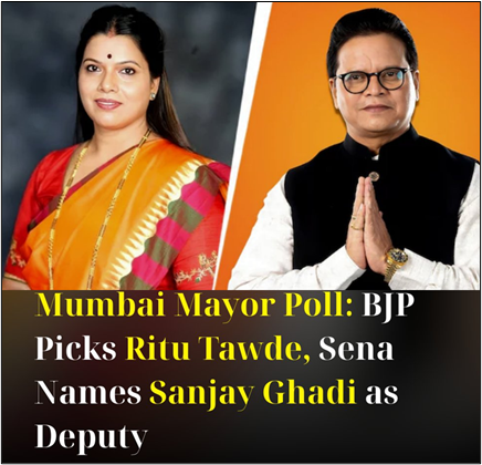 - சுமார் 44 ஆண்டுகளுக்குப் பிறகு ரிது தவ்டே மும்பையின் முதல் பாரதிய ஜனதா கட்சியைச் சேர்ந்த மேயராக தேர்ந்தெடுக்கப்பட்டார்.