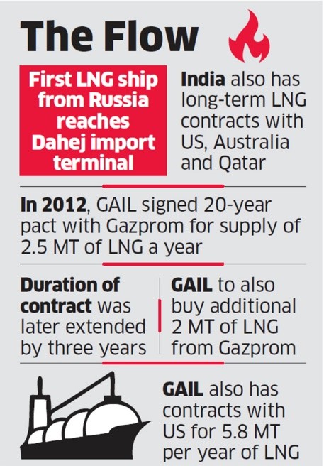 ரஷ்யாவின் கேஸ்புரோமிடமிருந்து (Gazprom) இந்தியா இது நாள் வரையிலான தனது முதல் மலிவான திரவ இயற்கை எரிவாயுவை பெற்றிருக்கிறது.