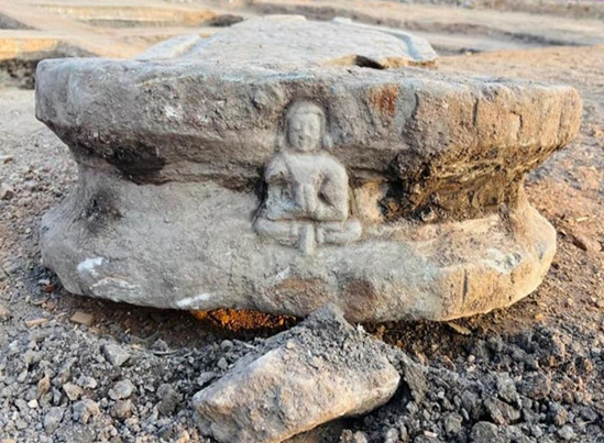 இந்திய தொல்லியல் துறையின் (ASI) கண்டுபிடிப்புகளில் உடைந்த சாம்பல் நிற களிமண் பானை, ஒரு கற்கோடரி, சோழிகள், சிலுவை வடிவ பீடம் மற்றும் ஜீனரின் உருவம் செதுக்கப்பட்ட ஒரு கல் பீடம் ஆகியவை அடங்கும்.