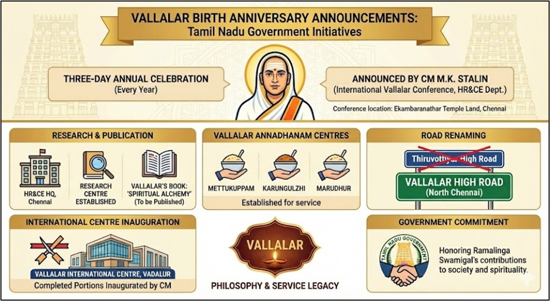 - ராமலிங்க சுவாமிகளின் (வள்ளலார்) பிறந்தநாள் ஒவ்வொரு ஆண்டும் மூன்று நாட்கள் கொண்டாடப்படும் என்று தமிழ்நாடு அரசு அறிவித்துள்ளது.