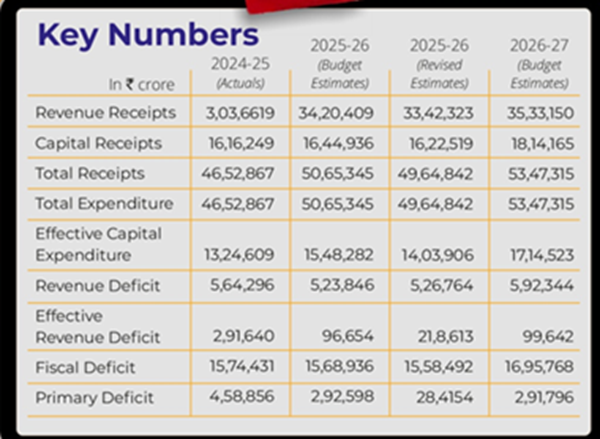• இது 2026 நிதியாண்டில் இருந்த ₹14.8 லட்சம் கோடியுடன் ஒப்பிடப்பட்டது மற்றும் 2026 நிதியாண்டின் பட்ஜெட் மதிப்பீடுகளை விட 16% அதிகமாகும்.