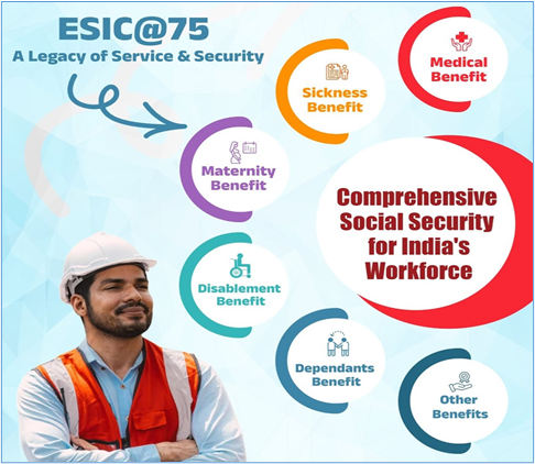 • ESI திட்டம் நோய், மகப்பேறு, இயலாமை மற்றும் வேலையில் ஏற்படும் காயம் காரணமாக ஏற்படும் இறப்பு ஆகியவற்றின் போது மருத்துவப் பராமரிப்பு மற்றும் பணப் பலன்களை வழங்குகிறது.