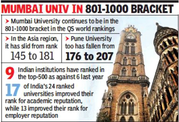 • ஐஐடி-மும்பை கடந்த வருடத்திலிருந்து 17 இடங்கள் முன்னேறி, 162வது இடத்தை பிடித்து இந்தியாவின் முதல் தரமான நிறுவனமாக உருவெடுத்துள்ளது.