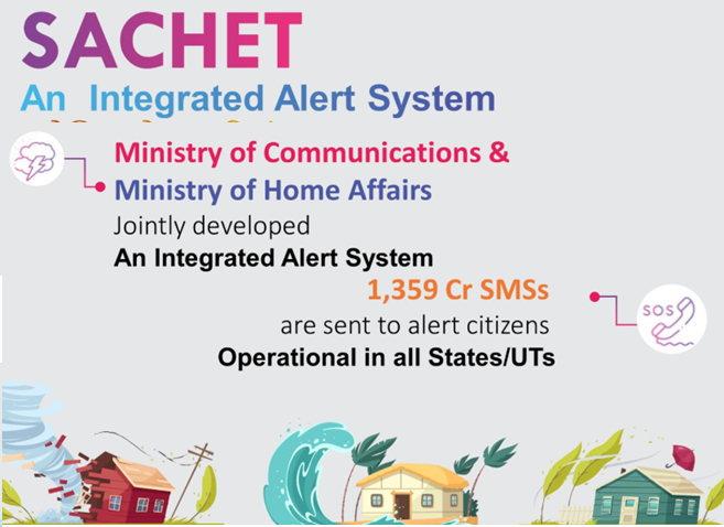 • அனைத்து இந்திய மாநிலங்கள் மற்றும் ஒன்றியப் பிரதேசங்களிலும் செயல்படுகின்ற SACHET, பாதிக்கப்பட்ட பகுதிகளில் உள்ள குடிமக்களுக்கு எச்சரிக்கைகளை அனுப்புகிறது.